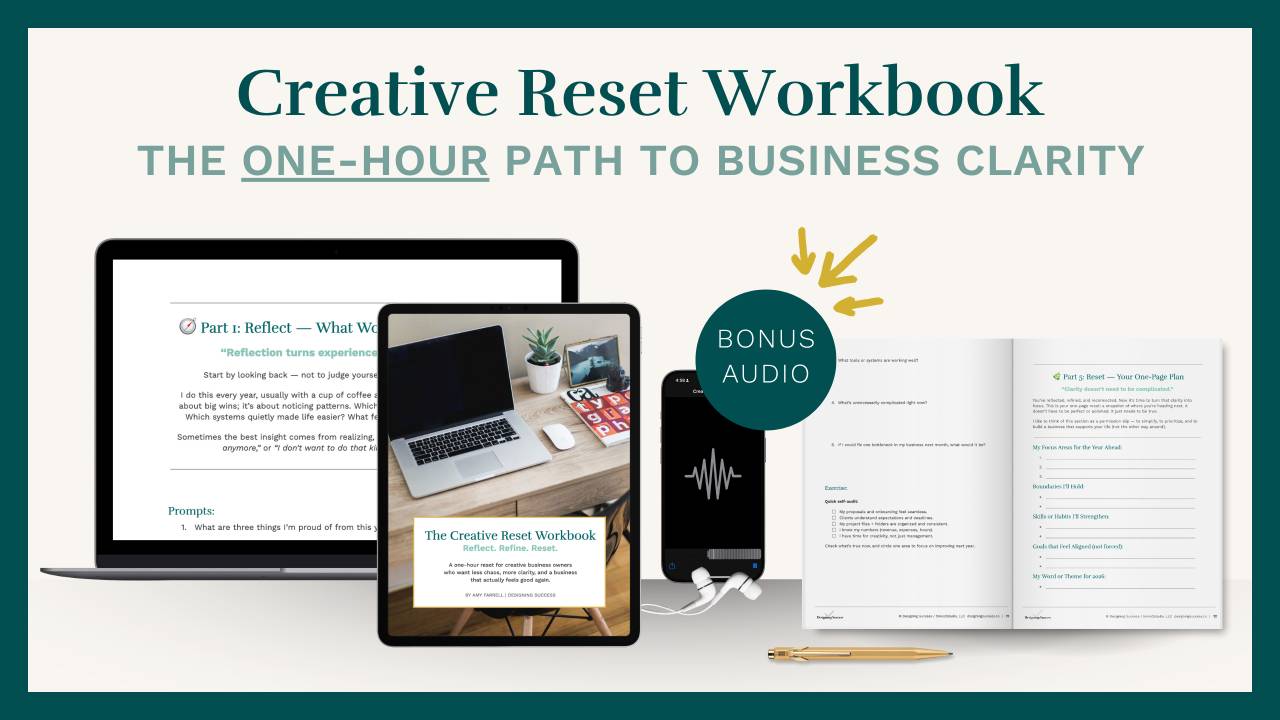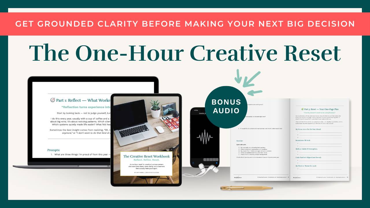 The One-Hour Creative Reset helps you get grounded clarity and direction so your business grows boldly and strategically.